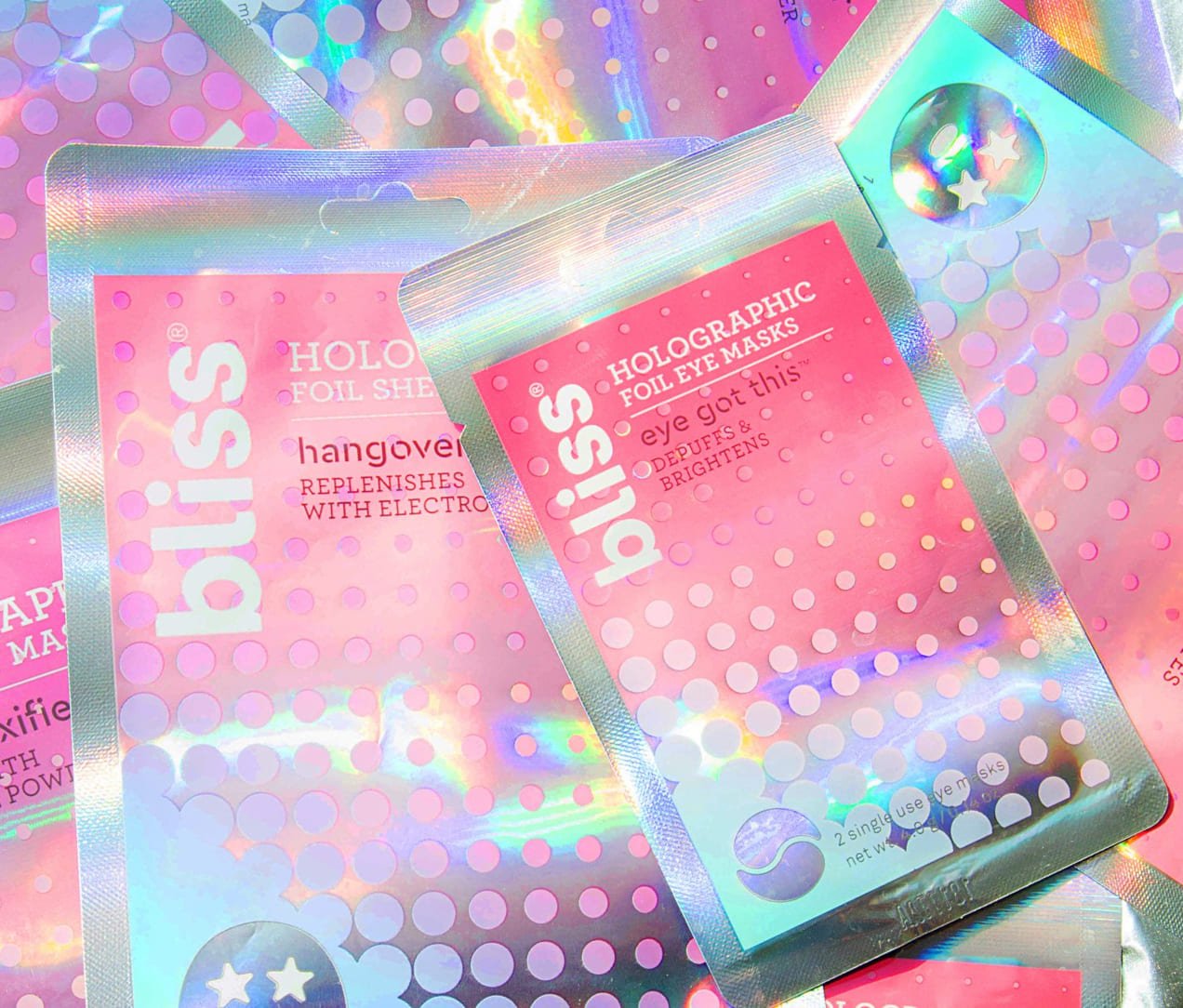 These foil-backed holographic under eye masks refresh and awaken eyes while helping visibly reduce puffiness and dark circles.